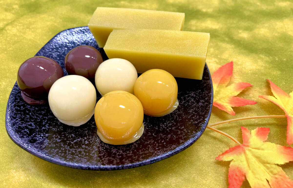 秋限定の『かぼちゃのあんこ玉』と人気のあんこ玉2種を芋ようかんと詰合せました。