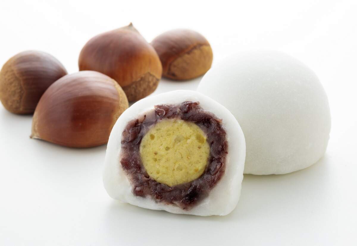 やわらかくこしのあるお餅の中に、厳選した栗と砂糖で炊き上げた栗きんとんとつぶ餡を包みました。栗の風味豊かなやさしい味わいです。
