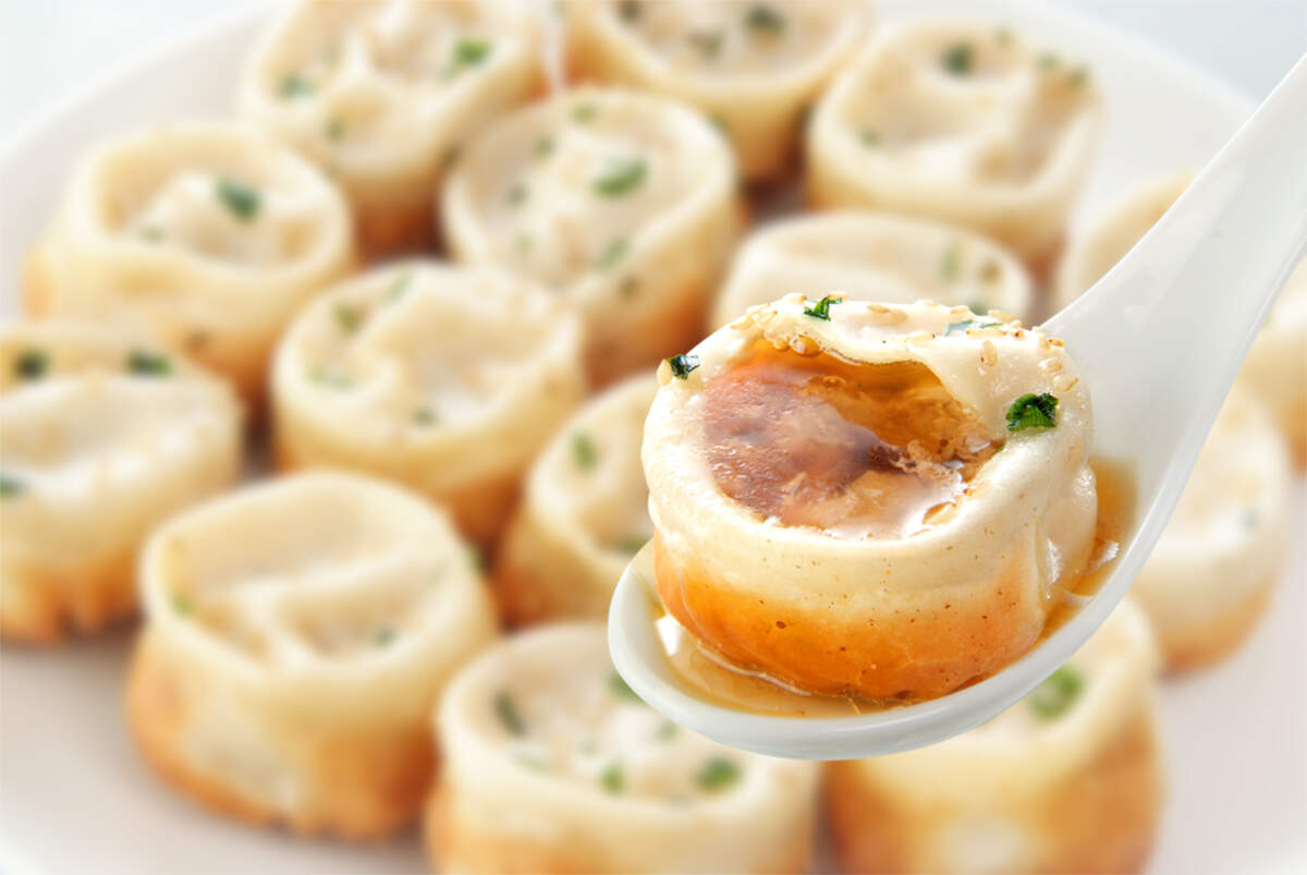 かりっ、もちっ、じゅわ〜の3つの食感が楽しめる焼き小籠包。溢れ出す肉汁コラーゲンスープが絶品です。