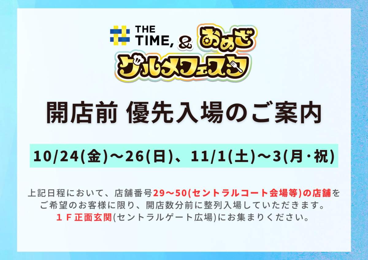 開店前優先入場のご案内【10/24(金)~26(日)、11/1(土)~3(月・祝)】