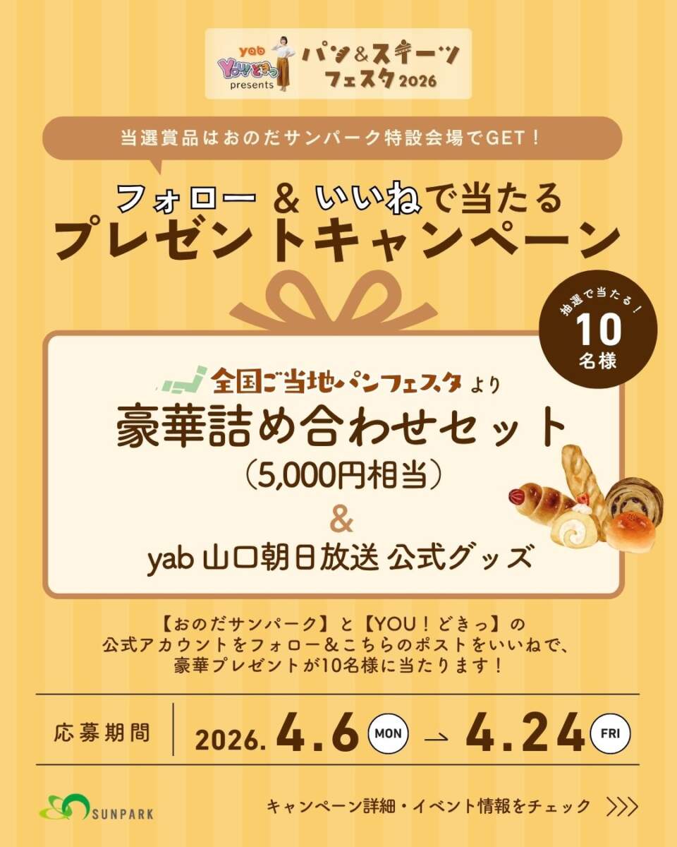 ・Instagramでおのだサンパーク公式(@onodasunpark)と YOU!どきっ公式(@youdoki_yab)をフォロー