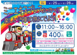 【土日祝のみ】おのサントレイン!ミニエキスプレスに乗って楽しい汽車の旅にでよう!2026.04.17UP