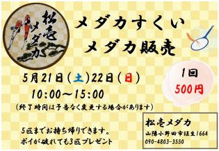メダカすくい メダカ販売<5.21sat~5.22sun>