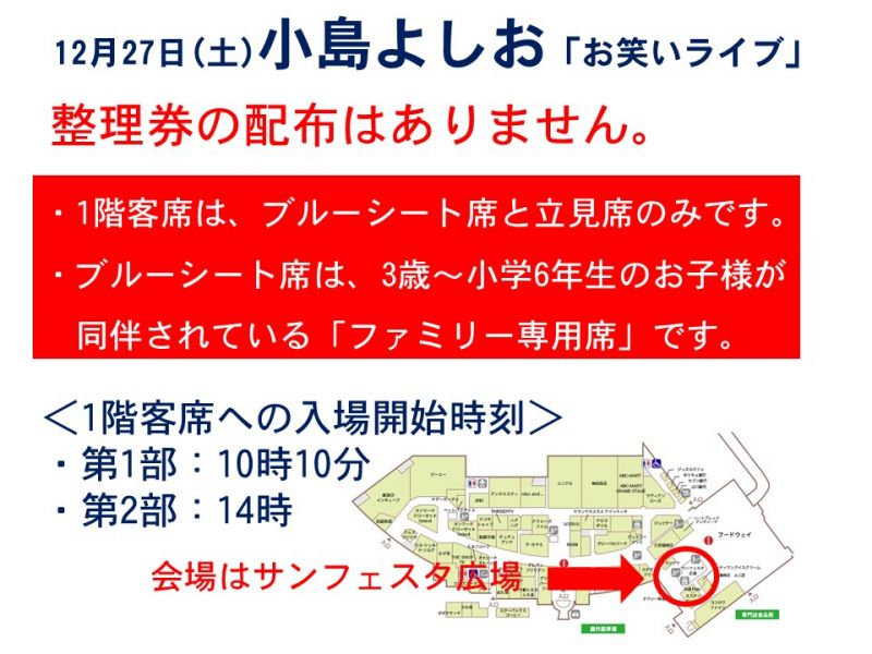 12月27日(土)小島よしお「お笑いライブ」について2025.12.19UP