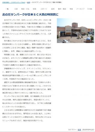 この度、おのだサンパークは、一般社団法人日本ショッピングセンター(SC)協会主催の、